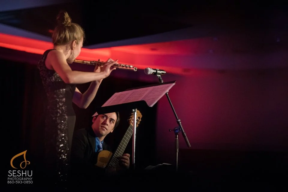 “Beautiful, expressive, hauntingly evocative...” (Phoenix Classical), Duo Alterity is “one of the premier flute and guitar duos on today’s concert stage,” (Richard Provost, Professor Emeritus and Founder of The Hartt School Guitar Department). The multi-award-winning ensemble has performed extensively across the United States and is sought after for their performance of new music. They served as Artists-in-Residence for two seasons of the Connecticut Summerfest Contemporary Music Festival, where they worked closely with emerging composers and gave six world premieres. In 2016, they gave the world premiere of “La Perla del Pico” by Frank Wallace.